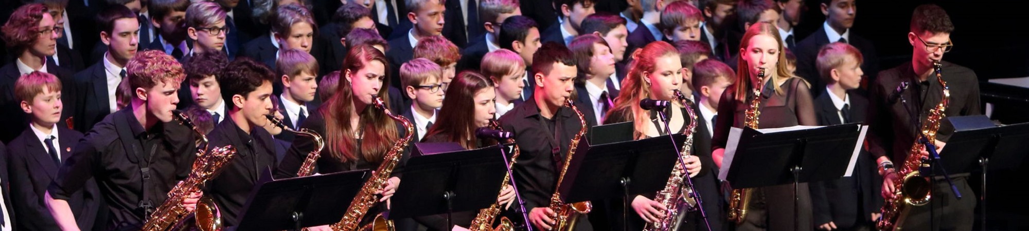 We have a diverse and wide range of ensembles at Âé¶¹Ó³», which rehearse during the school week. The ensembles are run by members of the Music department and some of our Instrumental teachers. Our provision is endorsed by our patron Julian Lloyd Webber. Our range of choirs has developed a strong culture of singing with gender equality and high participation. Our 130 Boys choir is Nationally recognised and they have featured in Gareth Malone's BAfta award winning series. Our choirs have also appeared on Howard Goodall's radio programme " class Acts' and on Teachers TV. We are proud to have Howard Goodall as our Choral Patron and Roger Black as our Boys Choir Patron. With over a third of our school actively involved in our ensembles and over 73% of our school cohort playing or singing, music is a very real and true part of the DNA of the school. A list of our provision is below: